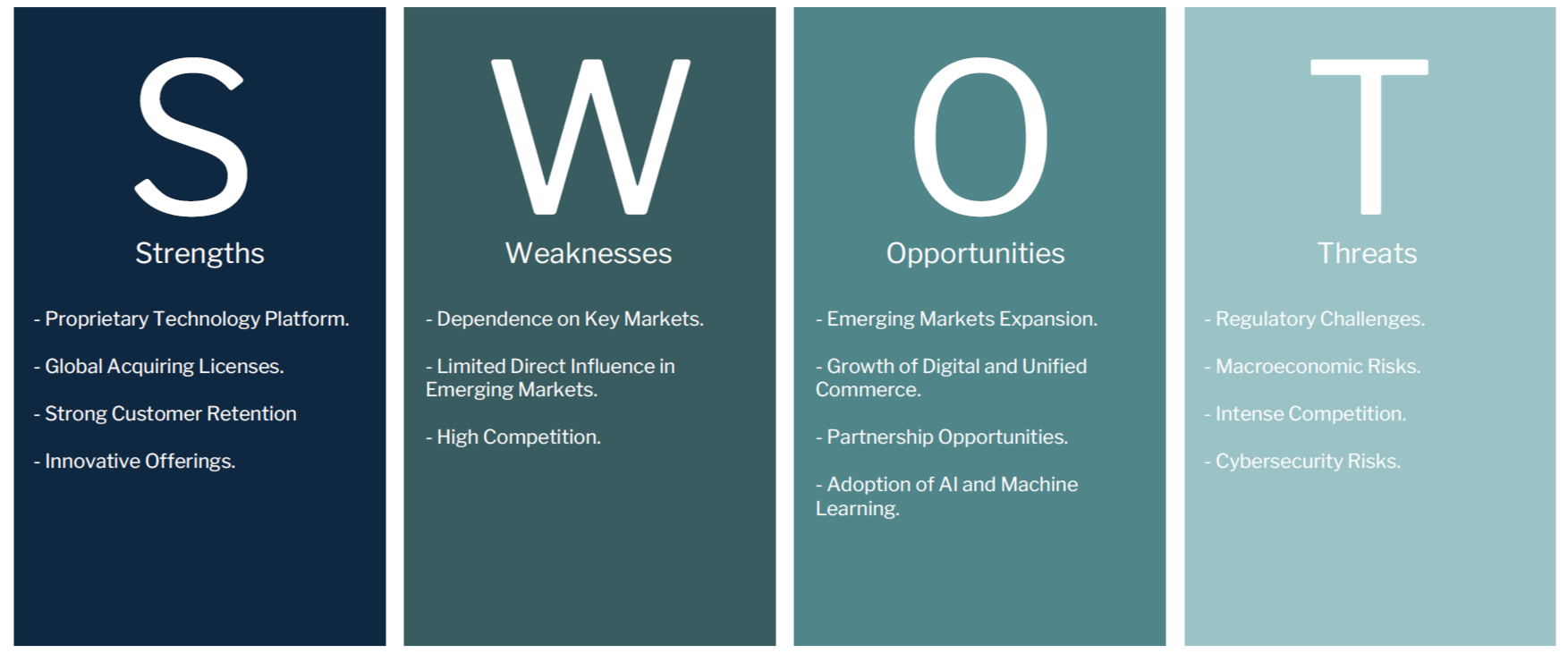 Digital Payments Industry Overview: Adyen operates in a dynamic and competitive industry, benefiting from macroeconomic shifts towards cashless transactions and rapid digital transformation. Its position as a global leader enables it to capitalize on growth opportunities while navigating competitive pressures.